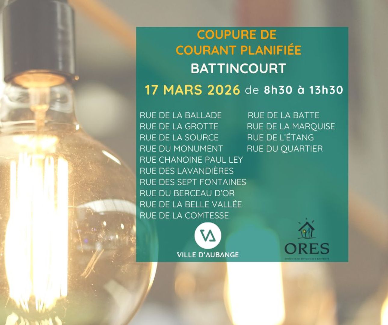 Coupure de courant planifiée – 17 mars – BATTINCOURT