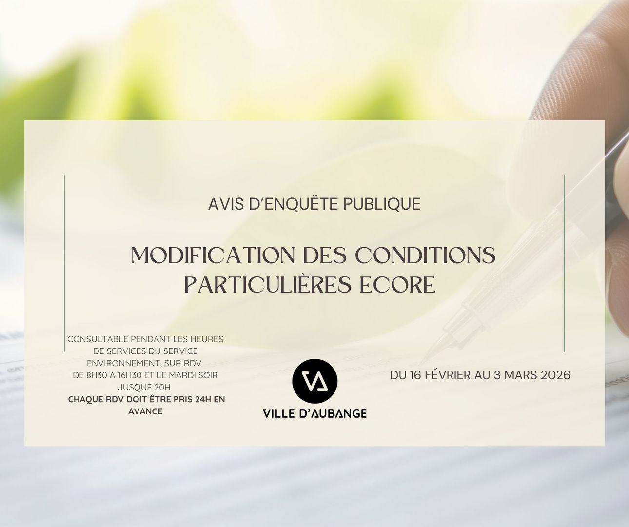Les observations écrites ou orales peuvent être adressées au Service Environnement de la Ville d’Aubange, jusqu’à la clôture de l’enquête.