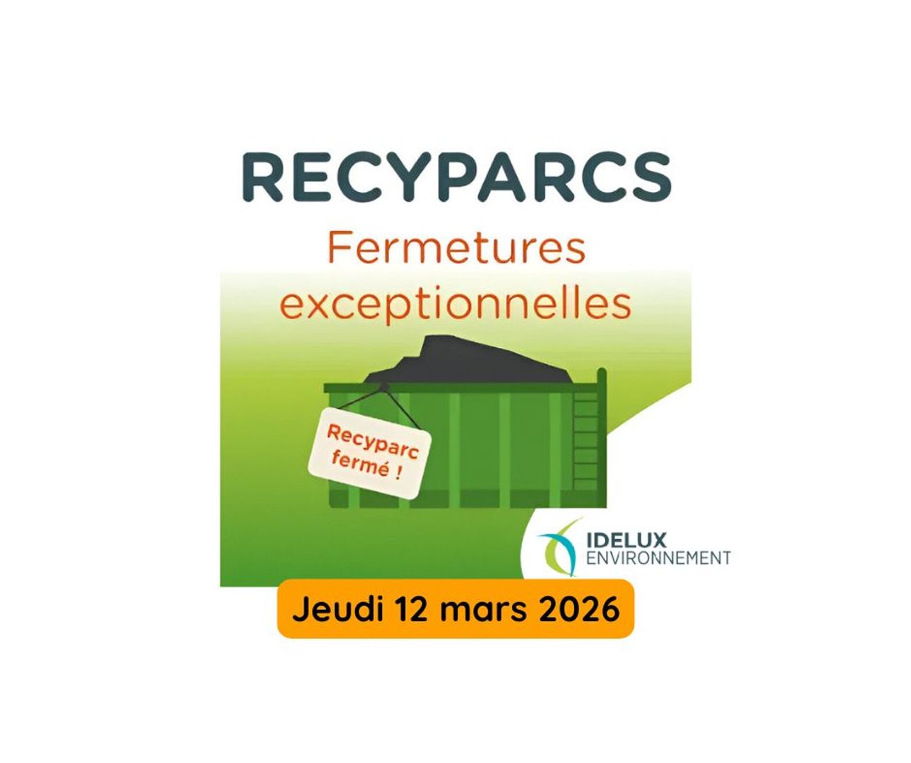 Pour rappel, tous les recyparcs seront fermés le jeudi 12 mars 2026 pour la formation du personnel.