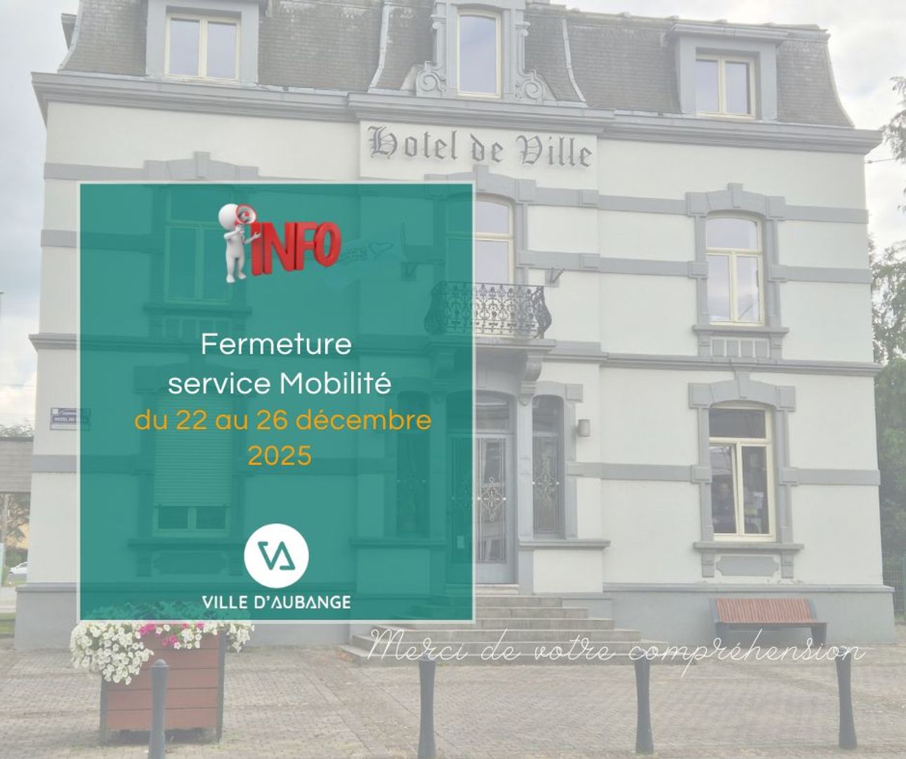 Nous vous informons que le service Mobilité sera exceptionnellement fermé du 22 au 26 décembre 2025.