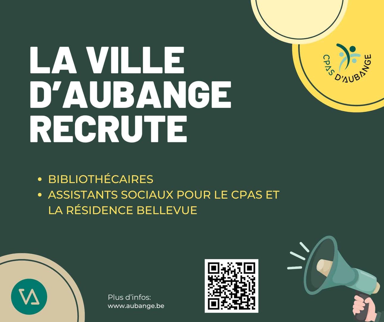 La Ville d'Aubange recrute actuellement des postes d'assistants sociaux et de bibliothécaires.