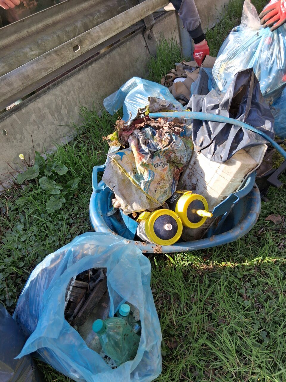 Au total, 14 personnes – issues du service Environnement, du service Travaux, du service Voirie, du Contrat de Rivière, ainsi qu’un bénévole – ont été mobilisées sur un linéaire de 2 km. Lors de cette journée de nettoyage, un container complet a été rempli d’une centaine de sacs et de nombreux déchets divers, un résultat particulièrement significatif pour une intervention sur une portion aussi court.