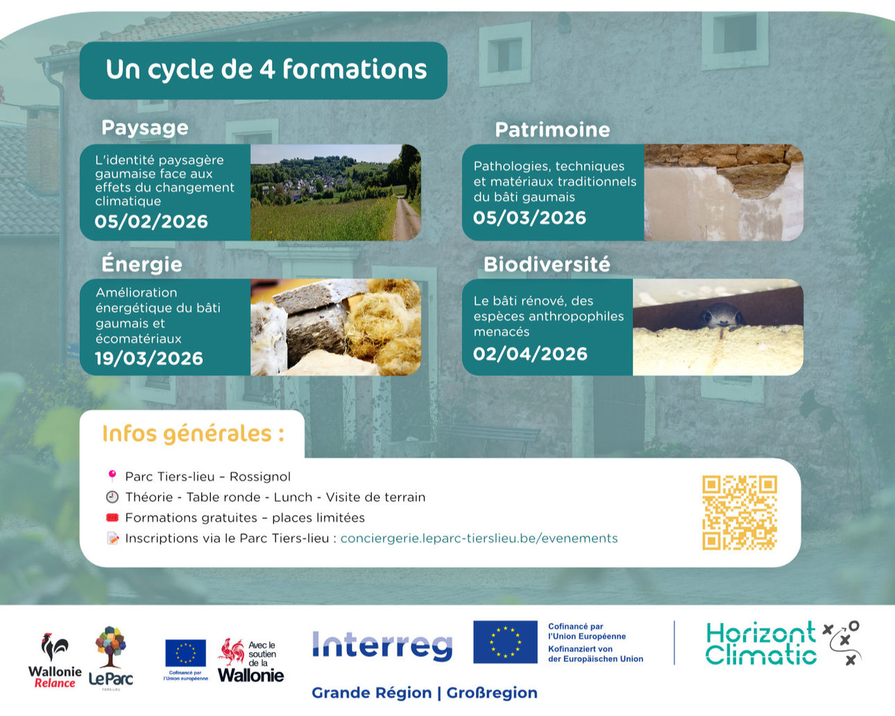 Le Parc naturel de Gaume vous invite à un cycle de quatre formations - mêlant théorie et visites de terrain - autour de la rénovation du bâti gaumais ancien, abordant les thèmes du paysage, du patrimoine, de la biodiversité et de l'énergie.