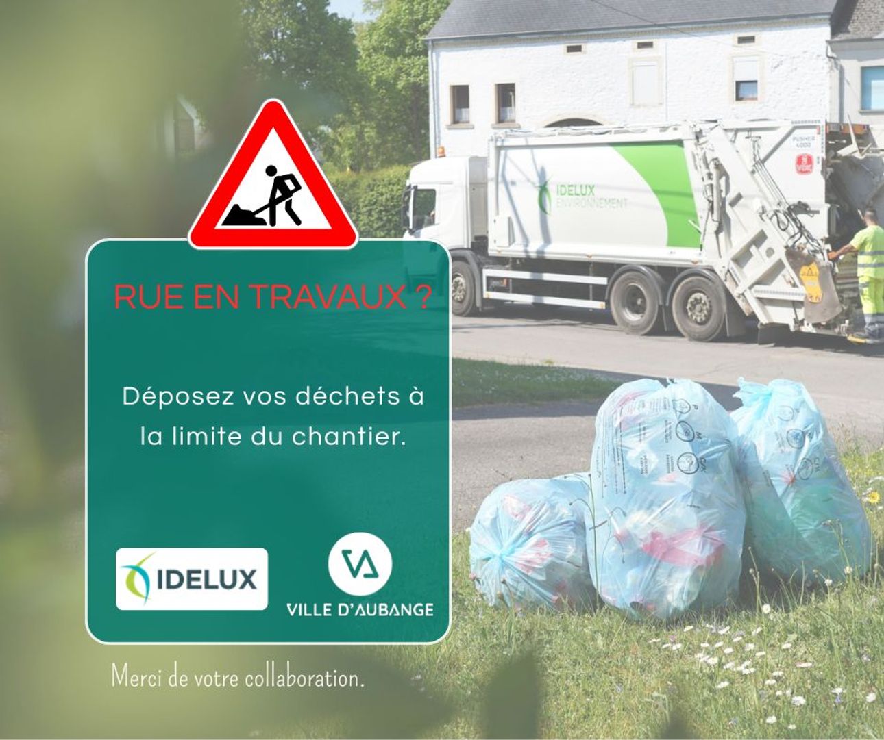 Merci de les déposer à la limite du chantier, de manière à ce qu’ils restent accessibles pour la collecte.