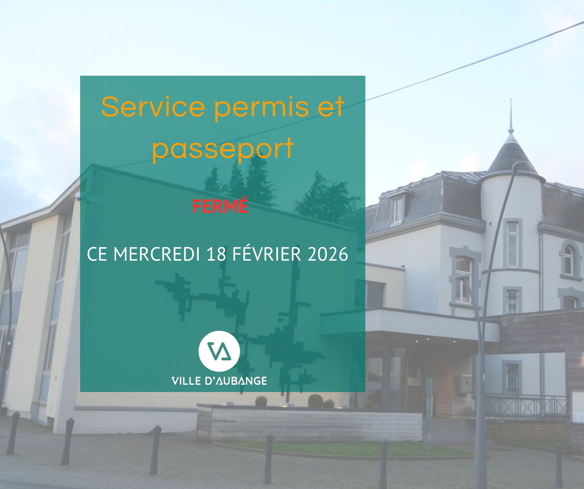 Fermeture exceptionnelle – Service Permis / Passeports ce mercredi 25 mars après-midi