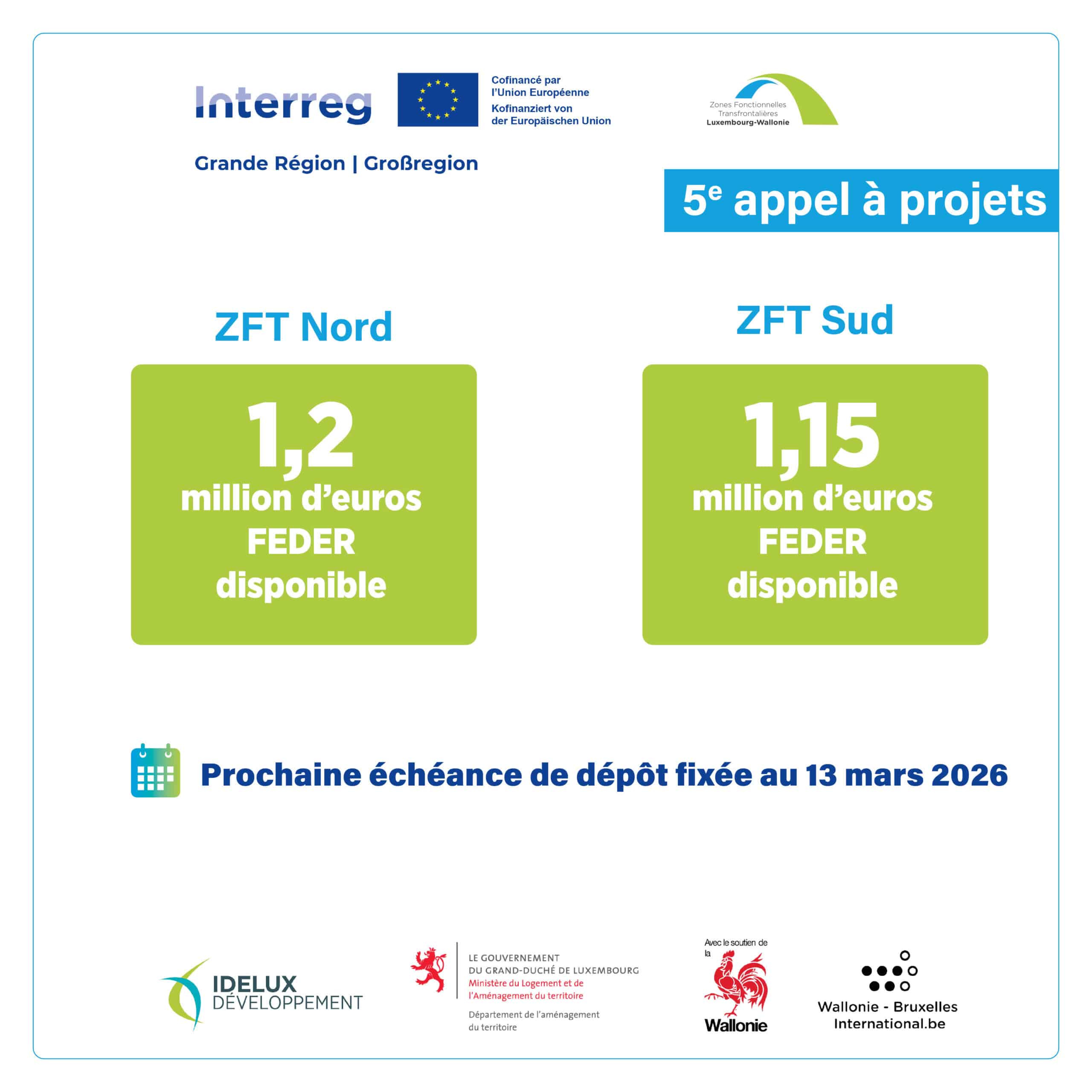 Les Zones Fonctionnelles Transfrontalières (ZFT) Luxembourg–Wallonie s’inscrivent dans le programme Interreg Grande Région 2021-2027, financé par le FEDER (fonds européens). Ce dispositif soutient des projets de coopération transfrontalière entre la Wallonie et le Grand-Duché de Luxembourg, au bénéfice des territoires et de leurs habitants. Deux ZFT sont concernées : Luxembourg–Wallonie Nord et Luxembourg–Wallonie Sud, dont […]